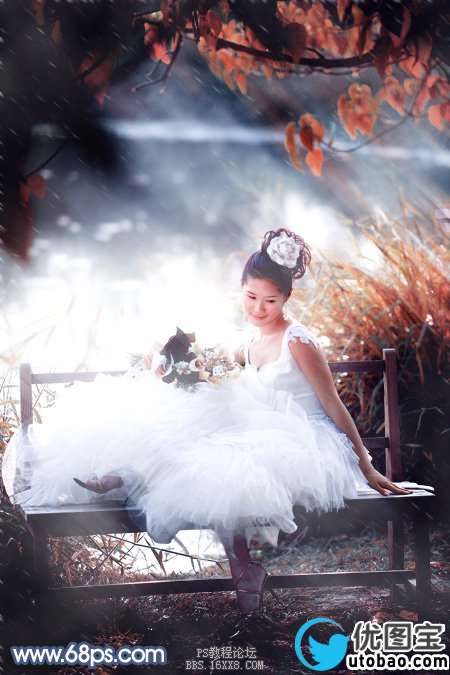 最后用模糊工具把局部模糊处理,再加强一下局部明暗,完成最终效果。