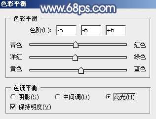 8、创建色彩平衡调整图层,对阴影,高光进行调整,参数设置如图24,25,效果如图26。这一步微调暗部及高光颜色。