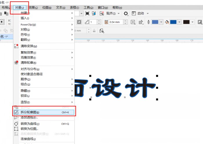 4、单击对象-拆分轮廓图(快捷键是Ctrl+K)。