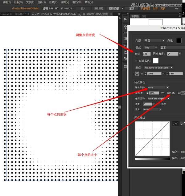 下面给出教程:主要用了Ai的插件Phantasm CS中的彩色半调(Halftone)的效果