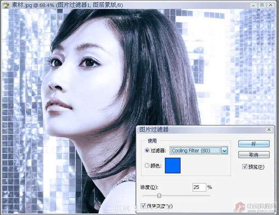 5.我再加个"图片过滤器"调整层,选个暖色过滤看看效果,效果不错,那就用它了,这样就得到了我开始发的效果图
