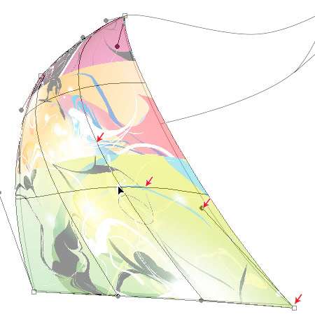 3.翘曲 (Photoshop 变形工具)调整到 40 或 50%的图层不透明度,使您可以看到该指引下。 转至 编辑 > 变换 > 经。 现在,您应该看到一个网格和 4 锚点在角落里。 弯曲图像,只需将锚点、 方向点或网格线。