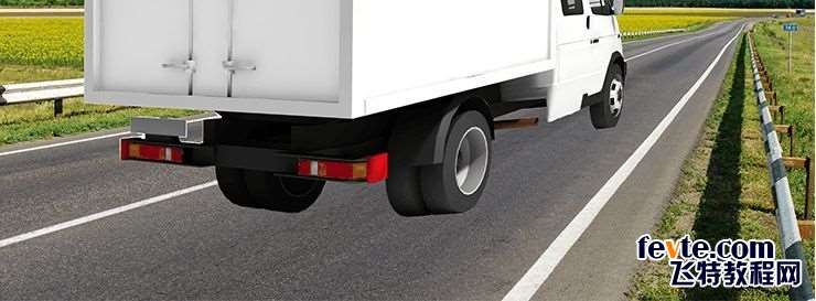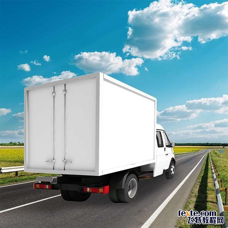 透视变形的另外一种用途是让两个图像达到透视匹配。下图为卡车和公路,两者的透视效果都很相近,但是没有完全匹配。我们下面的工作就是利用透视变形将卡车和公路从透视方面融合为一。