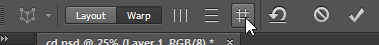 选择透视变形工具后,点击画布就会生产网格。点击网格四角,通过控制点将网格全部覆盖在建筑物一侧面,或者先选定控制点,然后用键盘方向键操作。这一步的完成标准是网格线条与建筑物基本平衡。