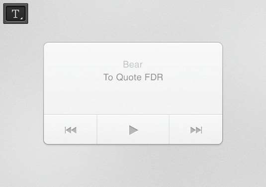 将倒回图标位置放好,让倒回和快进对称。下一步,添加标题、时间和艺术家名称,使用字体工具,标题和艺术家要形成对照,让标题文本图层的样色深一点。
