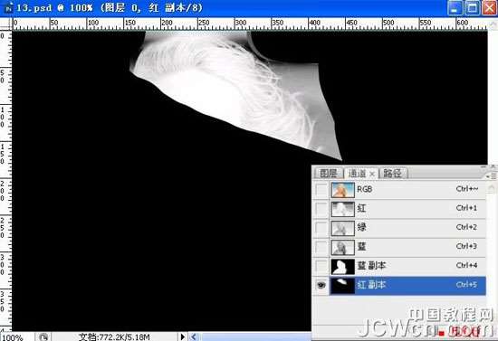 9.再次进入通道,复制红通道,得到红副本。用黑色画笔涂抹,只保留头顶白发。