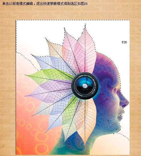 19、单击以标准模式编辑,退出快速蒙版模式,得到下图所示的选区。