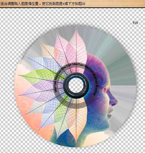 20、把选区羽化1像素后,按Ctrl + Shift + I 反选,按Ctrl + C 复制。回到我们的碟片文件,载入图层1选区,按Ctrl + V 粘贴,效果如下图。