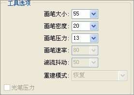 光笔压力:当计算机配置有数位板和压感笔时,勾选该项可通过压感笔的压力控制工具的属性。