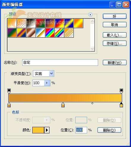 5、从左到右RGB分别为235、165、54,251、187、94和253、221、33,然后在图层2中从上到下填充渐变颜色,如图05所示。