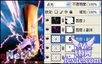_ueditor_page_break_tag_17、选择图层2,单击“添加图层蒙版”,使用200像素的柔边画笔在蒙版上涂抹,隐藏部分闪电效果。