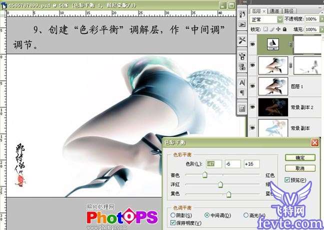 9.创建调整图层选择“色彩平衡”参数设置如图9(选择图层面版最下面中间的图标就可以选择)