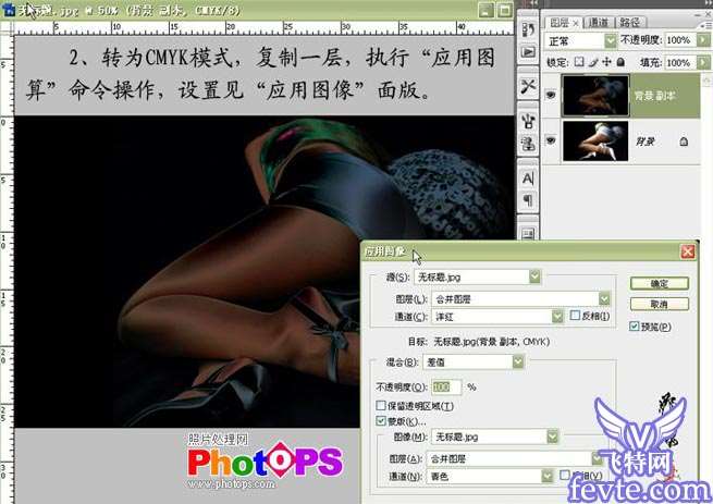 _ueditor_page_break_tag_2.选择菜单:图像 模式 CMYK颜色,按Ctrl J复制一层,选择菜单:图像 应用图像参数设置如图2