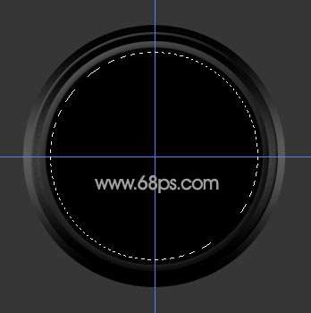 _ueditor_page_break_tag_2.新建一个图层用椭圆选框工具以参照线的交点为中心按Shift Alt拉出一个捎小的正圆选区如图4填充为黑色,按Ctrl D 取消选区,双击图层调出图层样式(图层 图层样式 渐变叠加),参数设置如图5-7,效果如图8