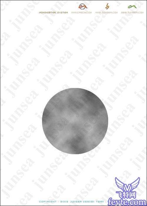 2.新建图层1,用椭圆选框工具,按住SHIFT在图象中拉出一个正圆形的选区,将前景色设置为黑色,背景色设置为白色,并执行菜单-滤镜-渲染-云彩,并按CTRL F多执行几次,让云彩的分布稍微均匀些(图1).