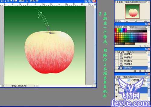 _ueditor_page_break_tag_12、再新建一个图层用钢笔工具勾出苹果的杆子。