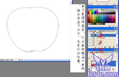5、用钢笔工具勾出苹果的路径。为了看得清楚,可以先把图层关闭。