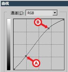如下左图,是在室内灯光下拍摄的照片,有严重的色偏现象, 使用自动颜色中的“查找深色与浅色”并开启“对齐中性中间调”。这样虽然纠正了色偏,但图像看起来还是较灰,因此在RGB通道中适当提升高光附近的亮度,同时维持暗调附近的亮度以免头发阴影等暗调部分偏白(过亮)。 这种S形曲线的特点就是既可增强画面对比又不会造成亮度合并。一般建立两个控制点,类似如下第3图,分别位于曲线整体长度的四分之一(A点)和四分之三(B点)处。然后依据具体情况适当移动这两个控制点。 一般来说,A点只适合上升,B点只适合下降。如果原图像较暗,就维持A点基本不动而上升B点。如果原图像较亮则维持B点基本不动而下降A点。如果图像既不亮也不暗则可上升B点同时下降A点。不过在此种情况下应优先使用自动颜色命令。