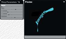 Rad Warp滤镜一共只有五个调节参数,头两个参数共同完成哈哈镜的凹凸效果,第三和第四个则控制凹凸球面的中心位置,其实这个中心位置完全可以在预览窗口中用鼠标确定,点击预览窗口并拖动到各个位置,变形会随之产生,所以这两个参数基本可以不用。最后一个参数控制在整个平面上的旋转。