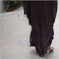 接下来打开所有图层,我们会发现抠下来的主体格外清晰,与背景格格不入。这时可以点击模糊工具,对人物的四周仔细地涂抹,并用大号的画笔在近处的地砖上稍作处理,使画面产生渐进的效果(图3)。