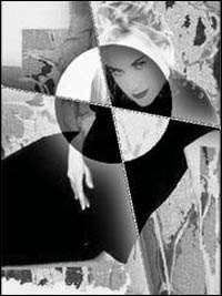 7.选择移动工具,将人物图像拖入前面所制作的图像。图像拖入后,Photoshop会自动为其建立一个新的图层。如图4所示为人物图像被拖入前制作图像后的效果。