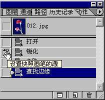 ,在工作窗口中会显示出如图3-39所示的历史记录画笔选项面板,上面记录了之前对图像的执行动作。其具体使用方法我们通过一个实例来说明。